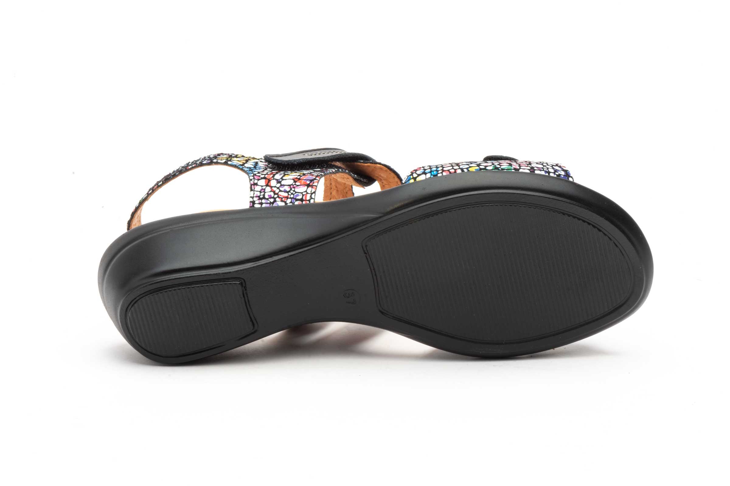 Estas **sandalias** de mujer están fabricadas en **piel** de color negro, un calzado perfecto para lucir en cualquier ocasión. Con un diseño elegante y sofisticado, estas sandalias son ideales para combinar con cualquier outfit.